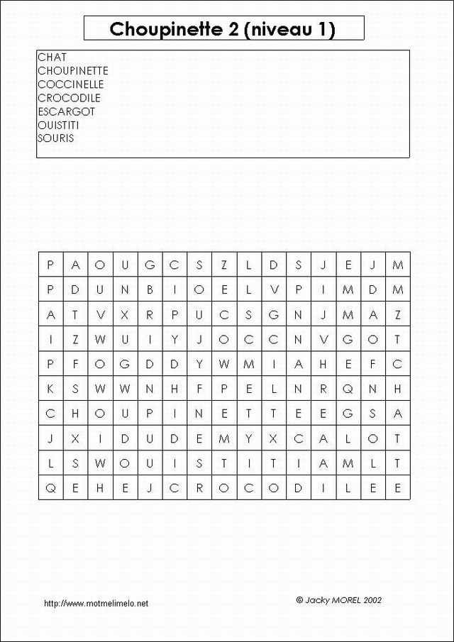mots utilisés: SOURIS CHAT ESCARGOT COCCINELLE OUISTITI CROCODILE CHOUPINETTE |