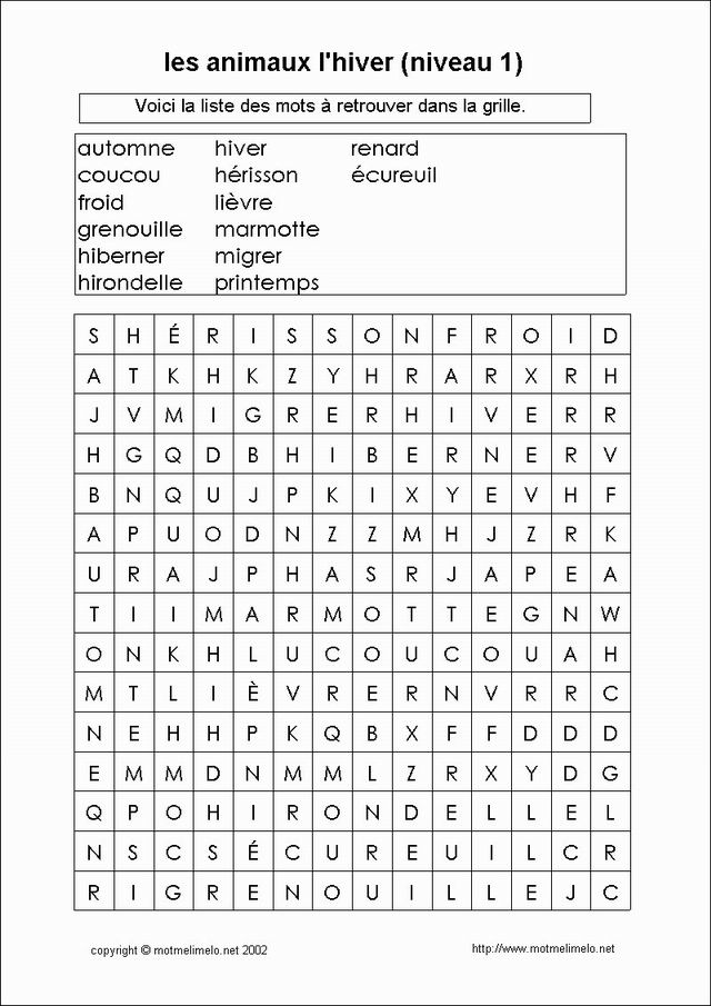 mots utilisés: OISEAU HIVER PRINTEMPS FEUILLES FORÊT BRANCHE FROID CHAUD NEIGE NOËL CADEAU |