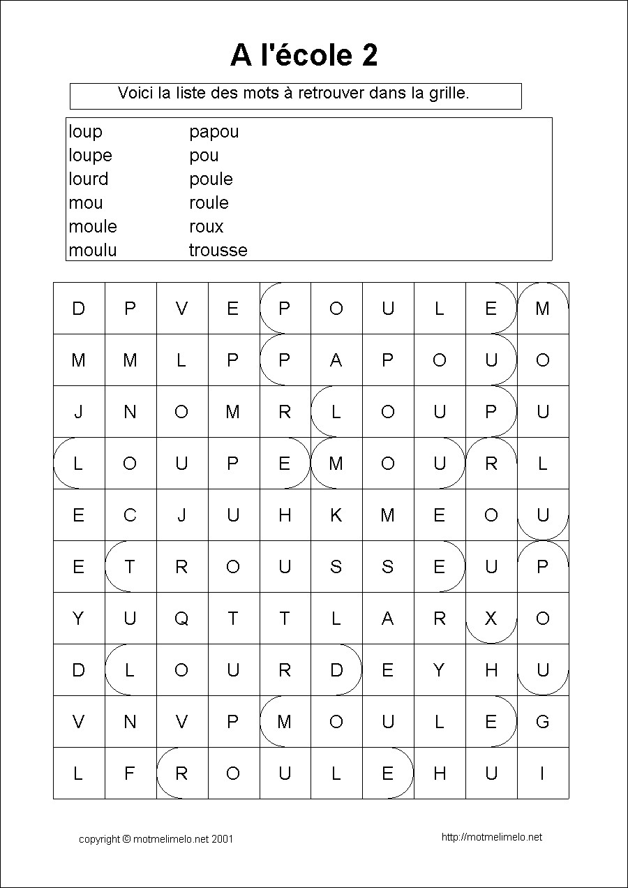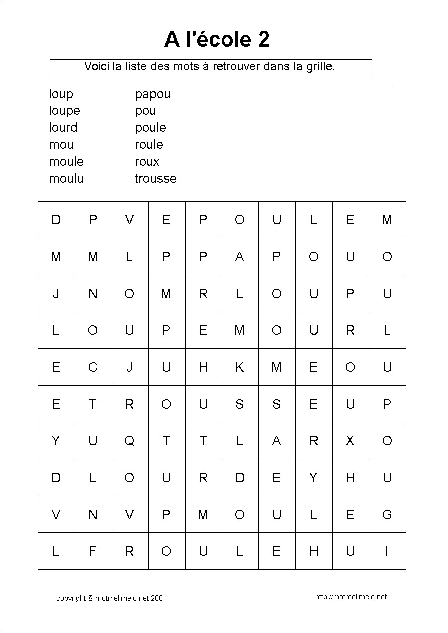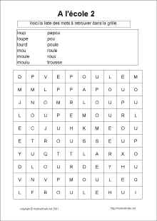télécharger les mots mêlés (cliquer ci-dessous) à l'école (niveau 2)