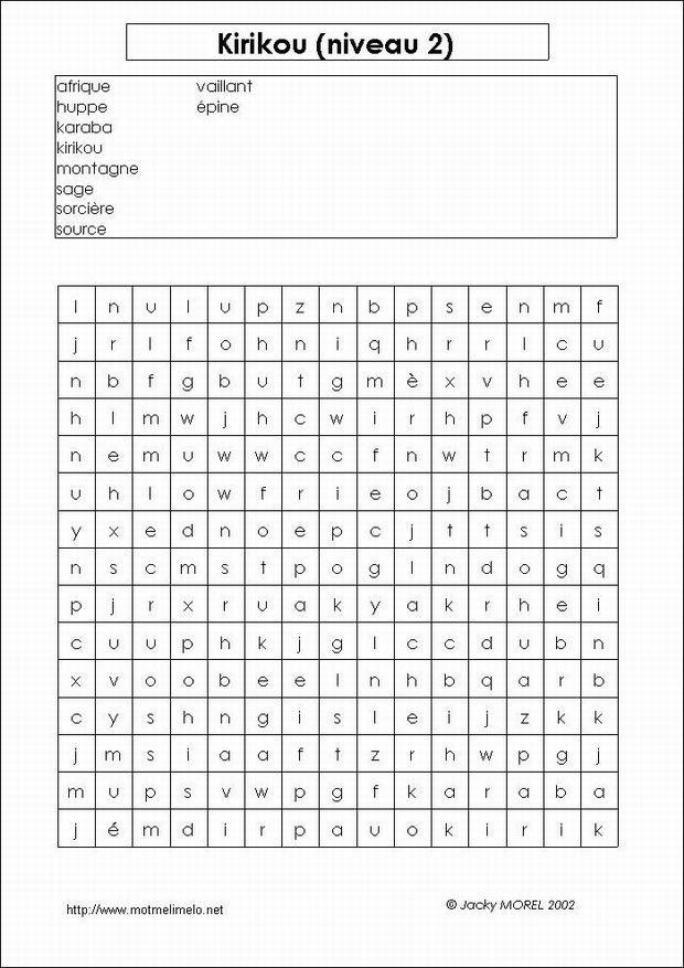 mots utilisés: sage montagne kirikou karaba sorcière source afrique huppe vaillant épine |