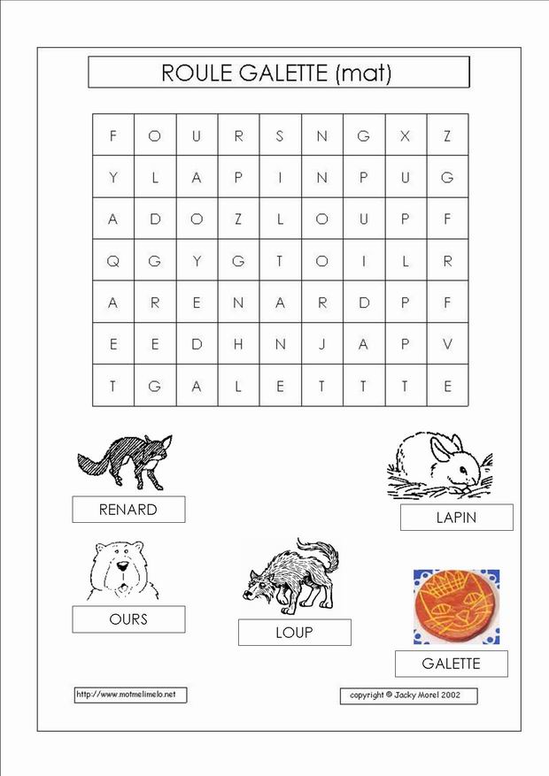 | mots utilisés: GALETTTE RENARD LOUP OURS LAPIN |