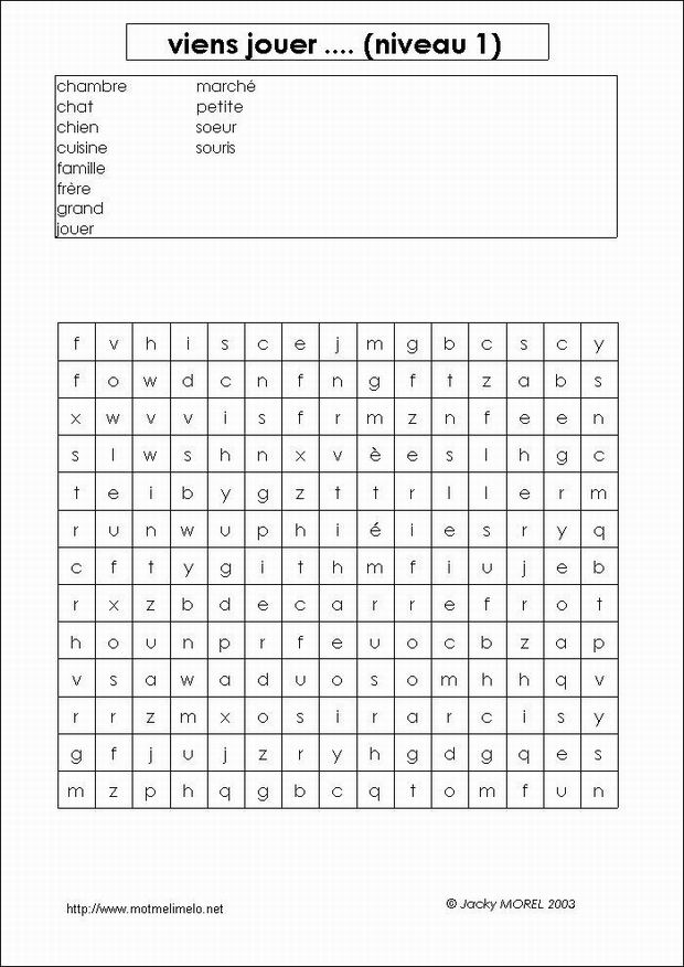 | mots utilisés: souris chat chien petite frère grand soeur famille jouer cuisine chambre marché |