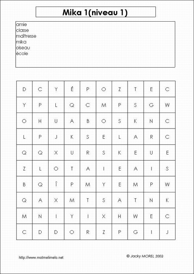 mots utilisés: mika oiseau classe école amie maîtresse |