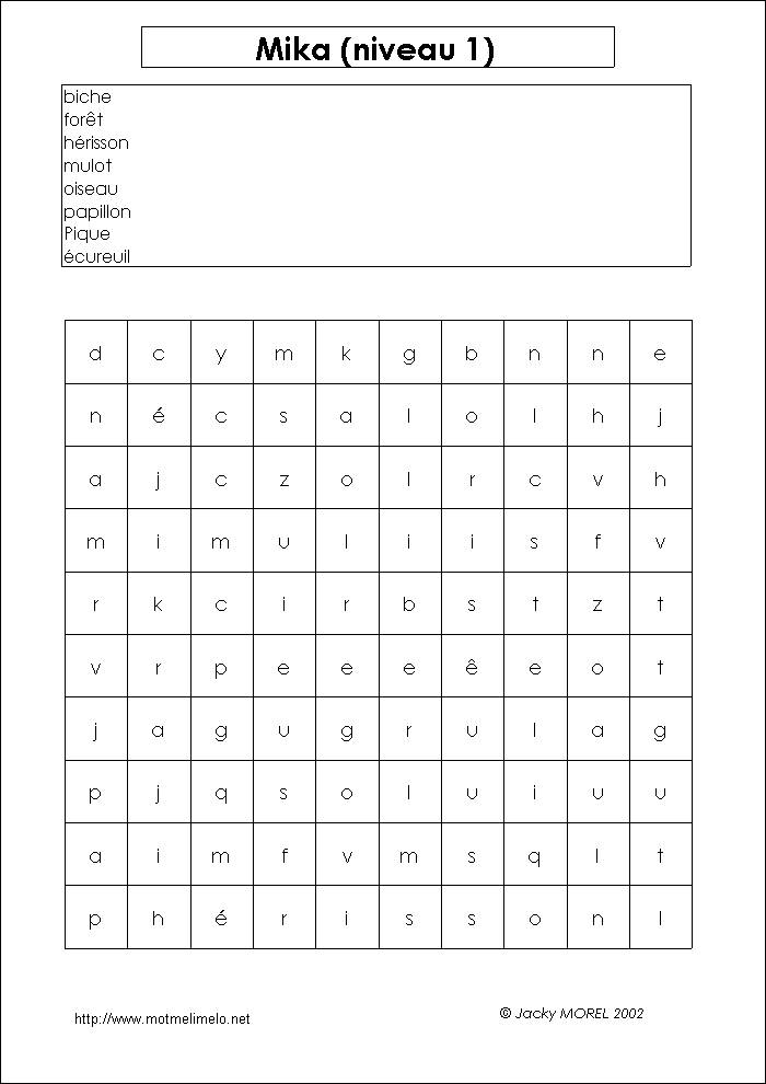 | mots utilisés: papillon écureuil mulot hérisson oiseau Pique forêt biche grille interactive |