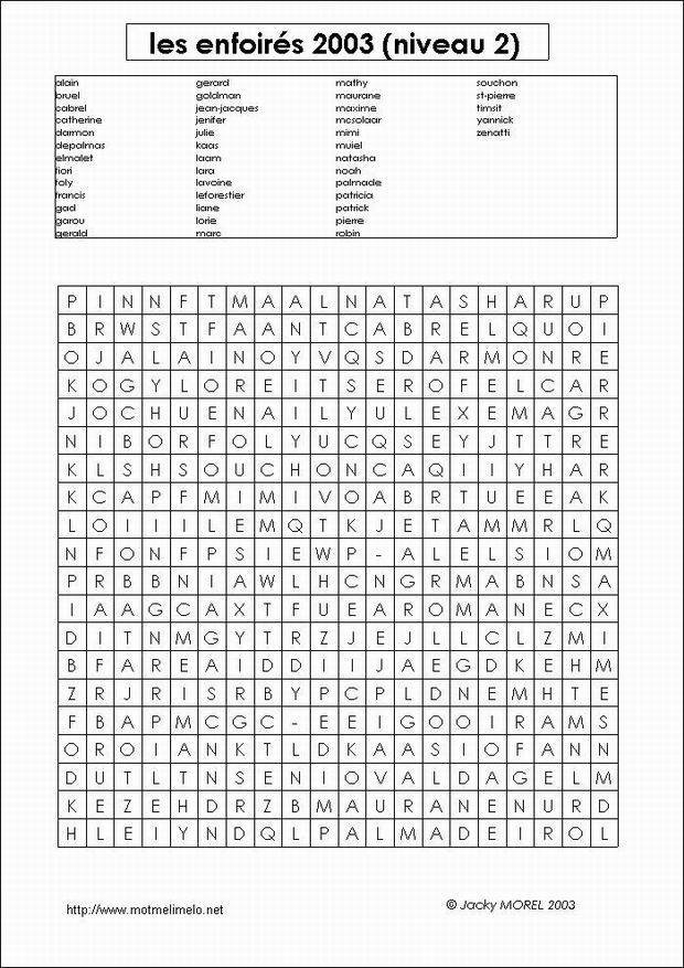 Les enfoirés 2003 NIVEAU 2 Cheyenne Dupond Nord France GRILLE INTERACTIVE |