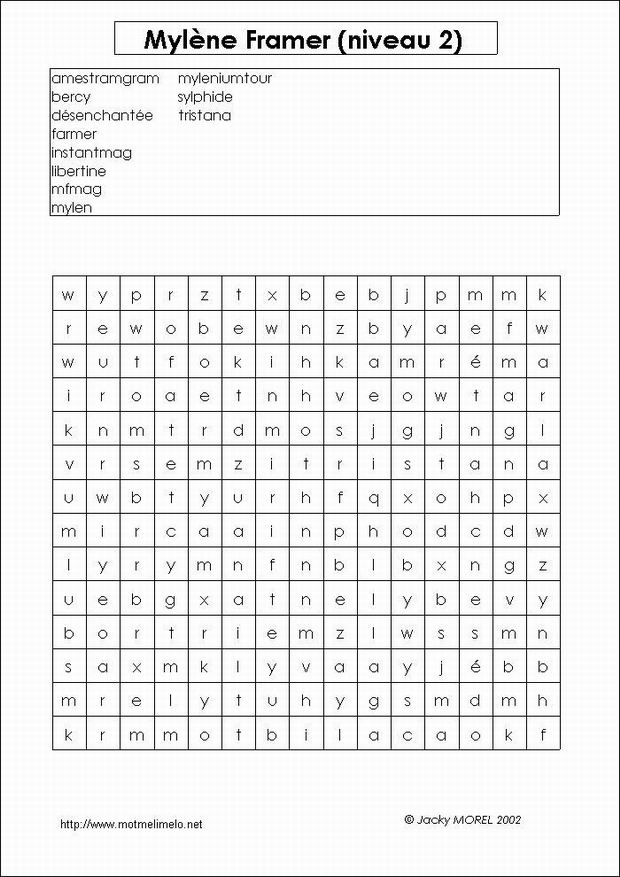 Mylène farmer NIVEAU 2 Cheyenne Dupond Nord France GRILLE INTERACTIVE |