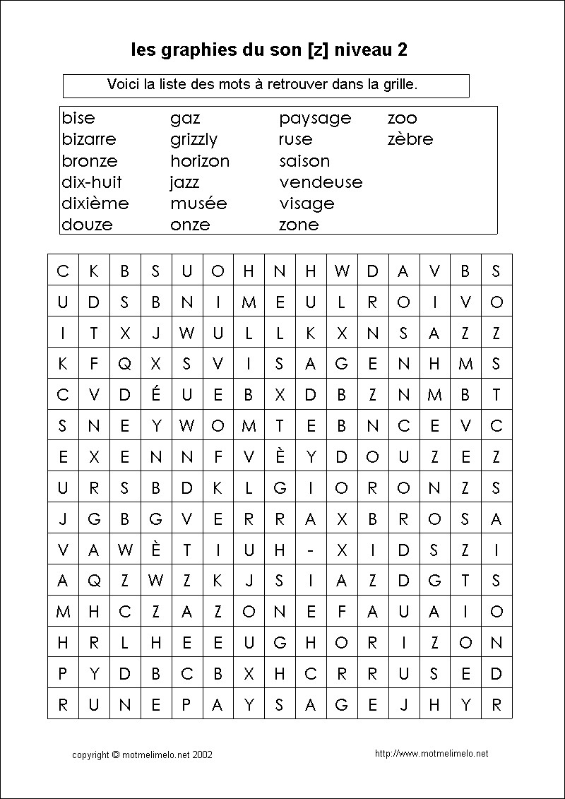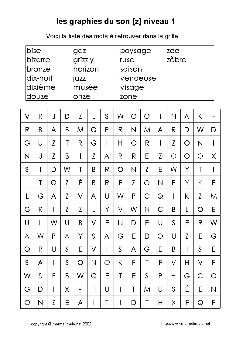 | bise bizarre bronze dix-huit dixième douze gaz grizzly horizon jazz musée onze paysage ruse saison vendeuse visage zèbre zone zoo |