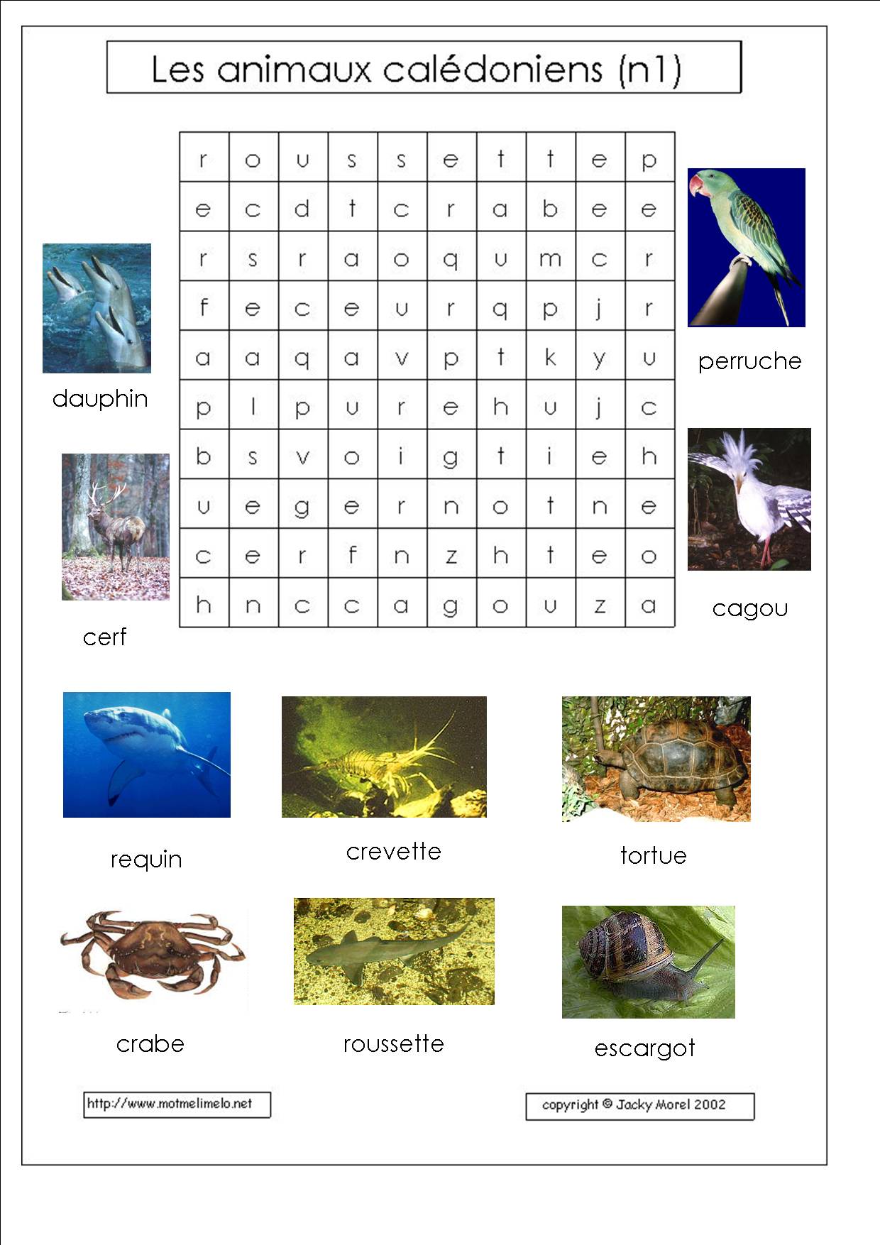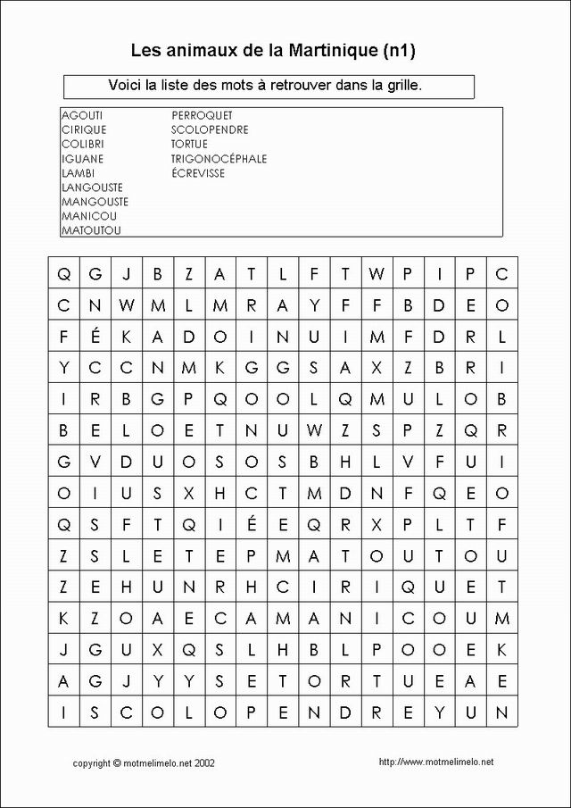 | mots utilisés: mangouste colibri matoutou cirique écrevisse langouste lambi tortue agouti manicou iguane perroquet scolopendre trigonocéphale |