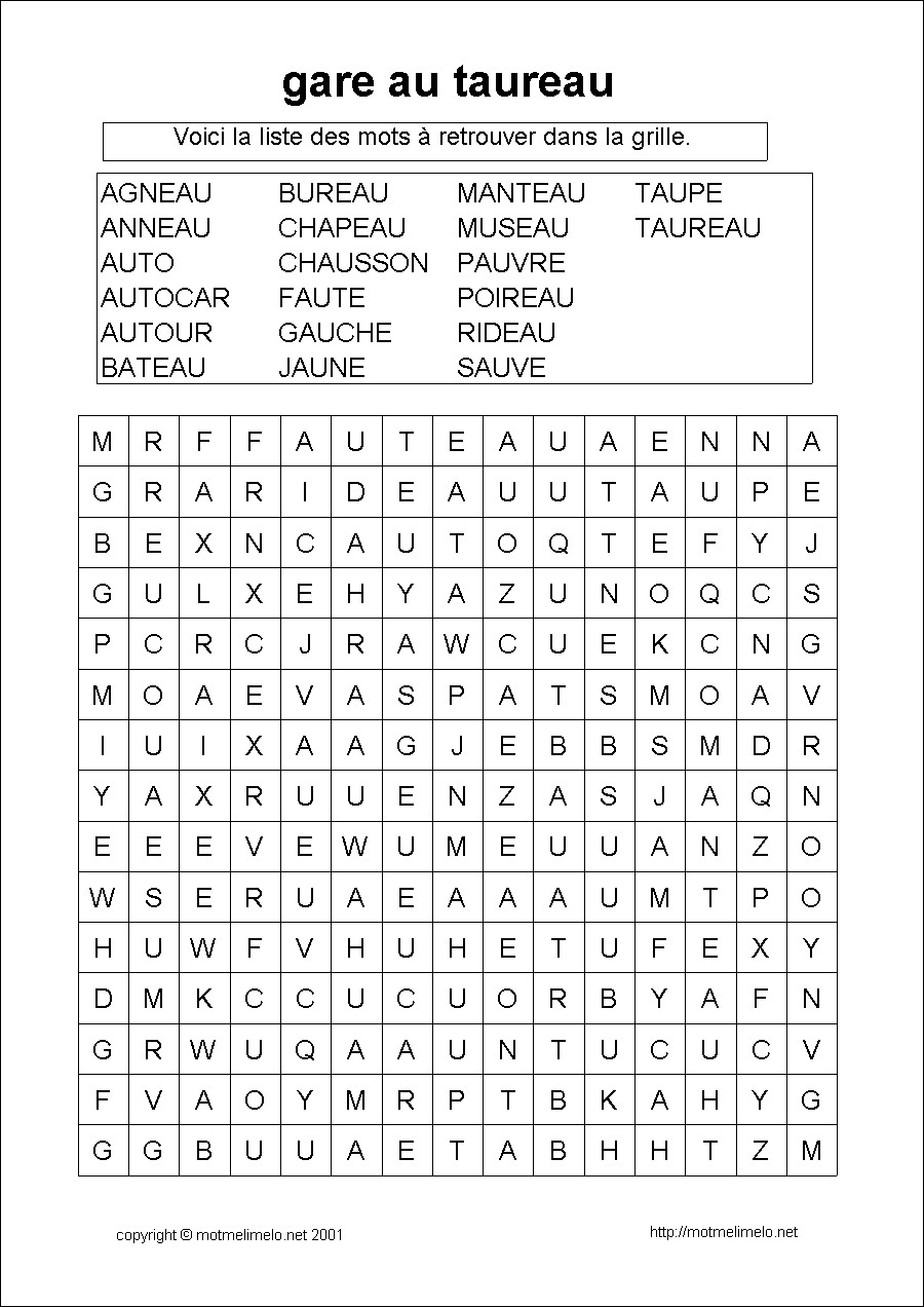 télécharger les mots mêlés gare au taureau (cliquer ci-dessous)