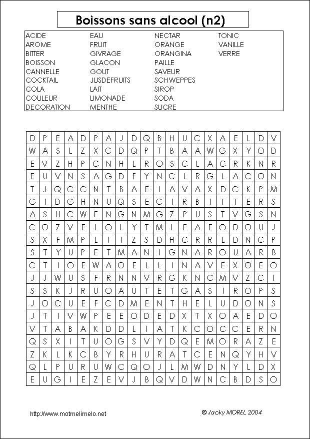 mots utilisés: BOISSON EAU COLA LIMONADE FRUIT TONIC BITTER SUCRE SCHWEPPES ORANGINA COULEUR JUSDEFRUITS AROME GOUT NECTAR SIROP LAIT GIVRAGE DECORATION GLACON VANILLE PAILLE VERRE SAVEUR COCKTAIL ACIDE MENTHE ORANGE SODA CANNELLE |