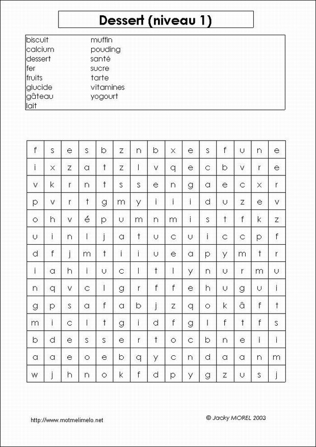 | mots utilisés: sucre glucide vitamines fer calcium lait dessert santé gâteau biscuit tarte pouding muffin yogourt fruits |