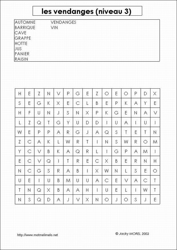 Les vendanges MATERNELLE (grille avec dessins) Isabelle Breil Albi France |